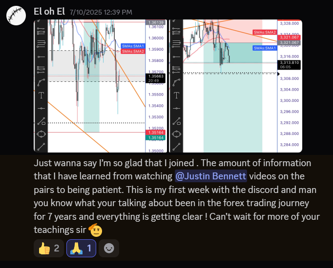 See my trades live, join 1,200+ traders in Discord, watch exclusive weekly videos, and master the complete trading system—built to help stuck traders finally get unstuck.