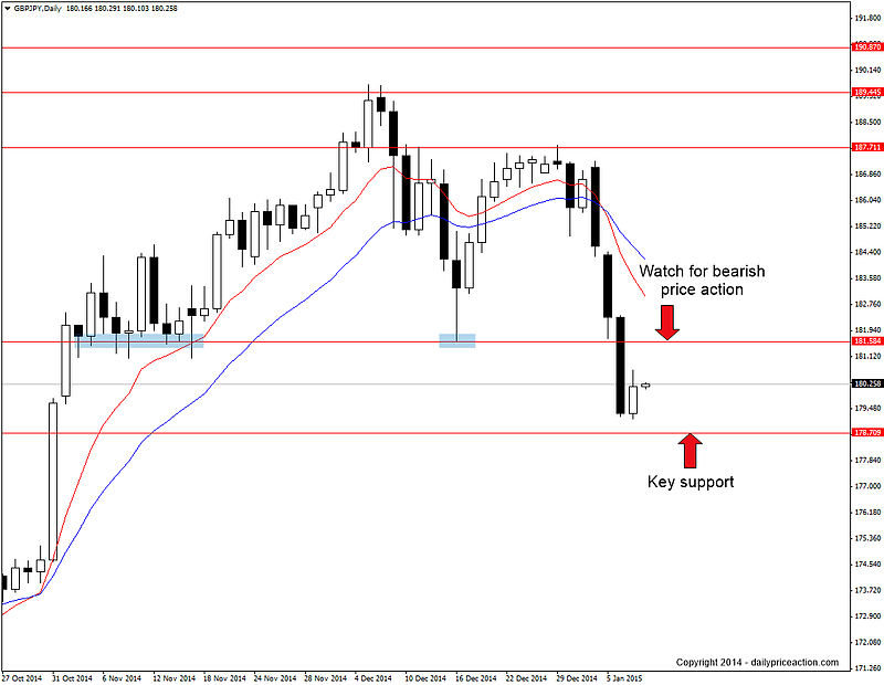 We kickoff today’s commentary with GBPJPY, a pair that has experienced a landslide in price recently. Since the start of 2015, the pair has lost more than 700 pips in four short days.