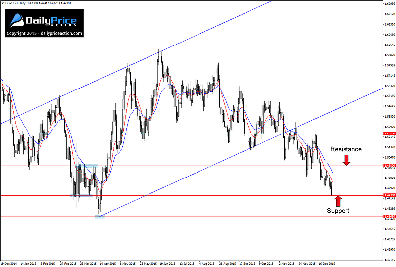 GBPUSD lost additional ground during the final trading week of 2015. Although the pair failed to make it back to the 1.4980 handle as per my commentary from last weekend, the bears did manage to push prices to new eight-month lows.