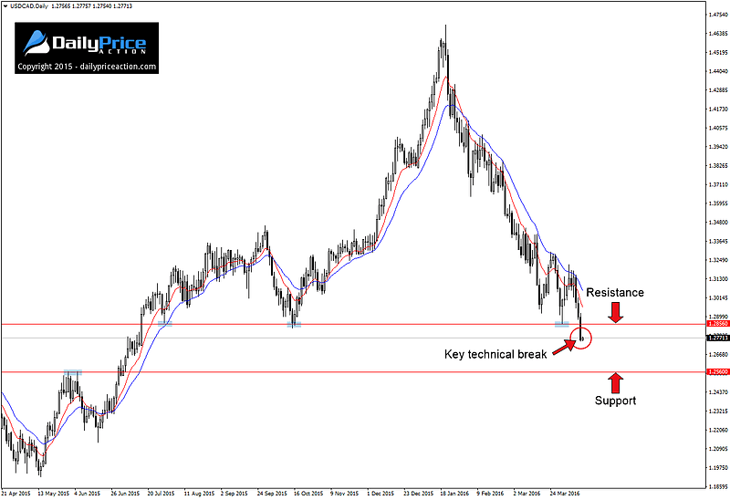 The key 1.2856 handle that broke down during yesterday’s session was a “must hold” area for the bulls. With the pair now comfortably below it and the BoC rate decision less than 24 hours away, things are about to get interesting.